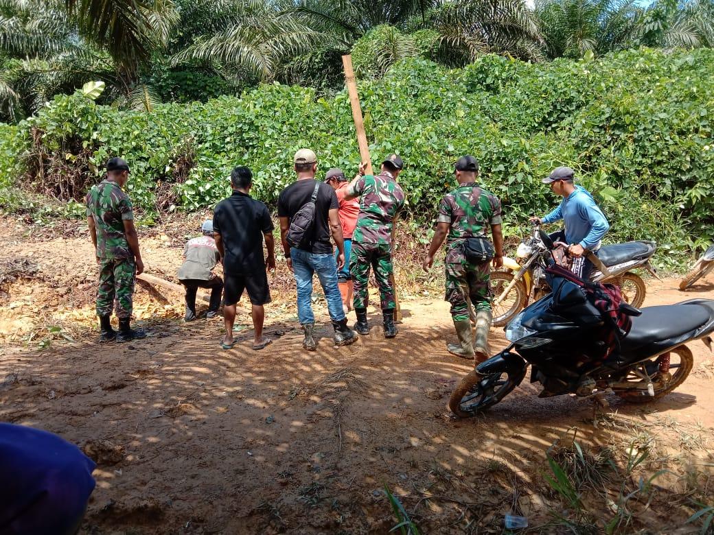 Gotong Royong Perbaiki Jalan Berlobang Anggota Satgas Yonif 144/JY Bersama Warga di Perbatasan