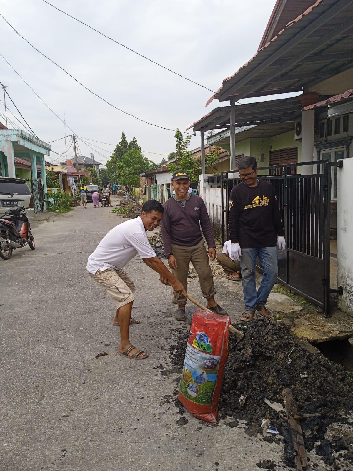 PEKANBARU – Warga Perumahan Griya Nusantara Sidomulyo Permai yang tergabung dari RT 01, RT 02 dan RT 03 di RW 05, Kelurahan Perhentian Marpoyan, Kecamatan Marpoyan Damai, Pekanbaru, Riau melakukan Gotong Royong, Minggu (12/2/202).