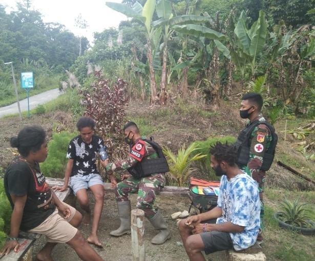 Hadir di Tengah-tengah Warga, Anggota Satgas Pamtas RI-PNG Yonif 711/Raksatama Memberikan Pelayanan Kesehatan Gratis ke Rumah-rumah Warga Binaan