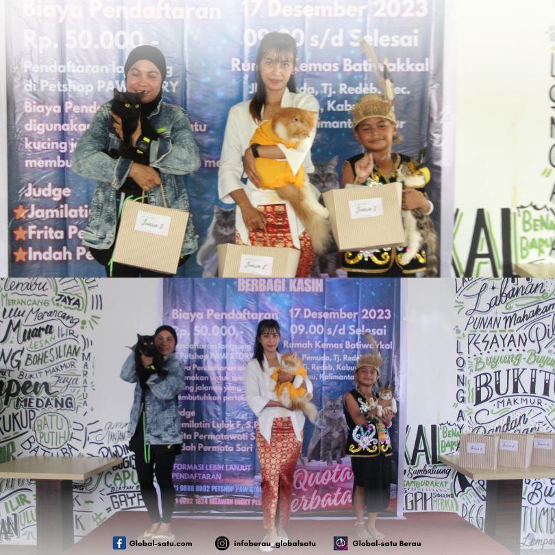 Tanjung Redeb, Global-satu.com – Relawan Engky Pesek Berkolaborasi dengan Petshop Paw Story selenggarakan Cat Fashion Show dan Edukasi Tentang Kucing dalam rangka galang dana untuk kucing terlantar dan kucing jalanan.