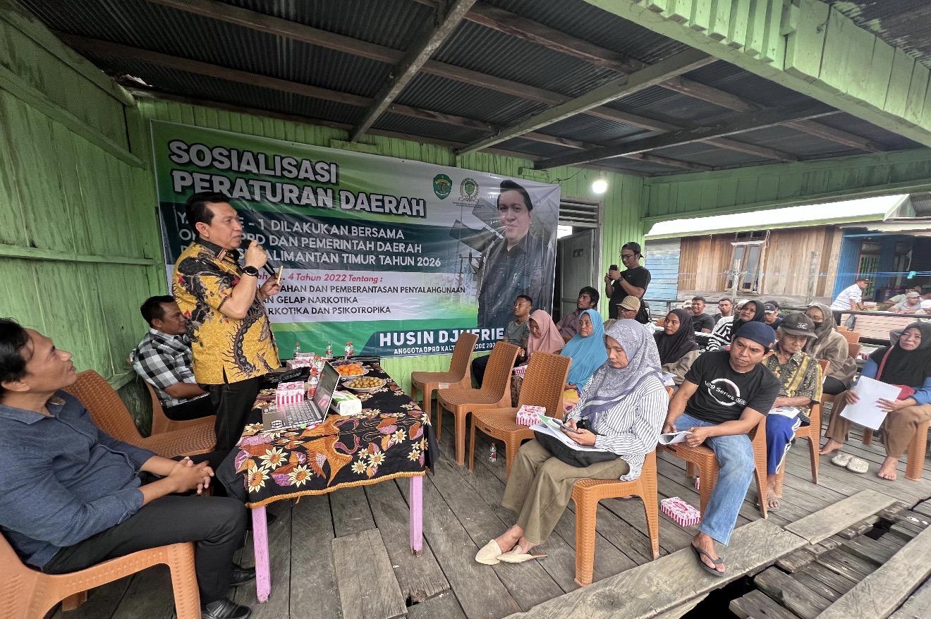 BERAU, Global-satu.com – Anggota DPRD Provinsi Kalimantan Timur, H. Husin Djufrie, memulai agenda kerja tahun 2026 dengan melakukan Sosialisasi Peraturan Daerah (Sosper) di wilayah pesisir. Kecamatan Talisayan, Kabupaten Berau, menjadi titik perdana dalam penyebarluasan Perda tentang Pencegahan dan Penanggulangan Narkotika, Senin (5/1/2026) sore.