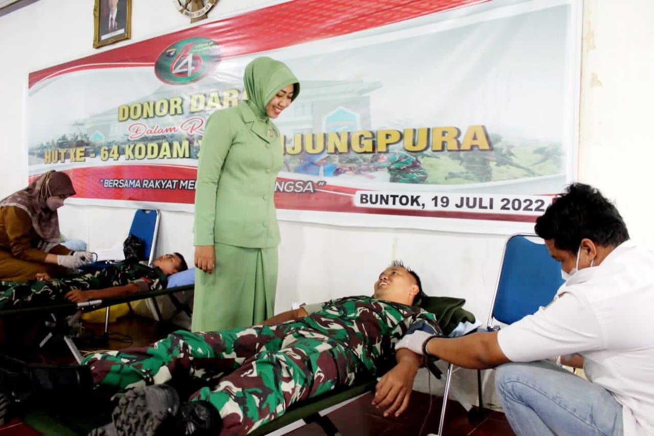 HUT Kodam XII/TPR Ke-64, Puluhan Anggota Kodim 1012/Btk,PNS Serta Ibu Persit Ikuti Donor Darah