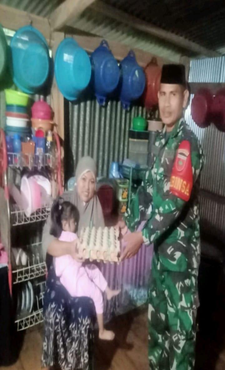 Sertu Bahar Syam juga menyampaikan, bahwa tidak hanya bersilaturahmi, dalam kegiatan tersebut pihaknya juga memberikan bantuan berupa telur kepada pemilik rumah.
