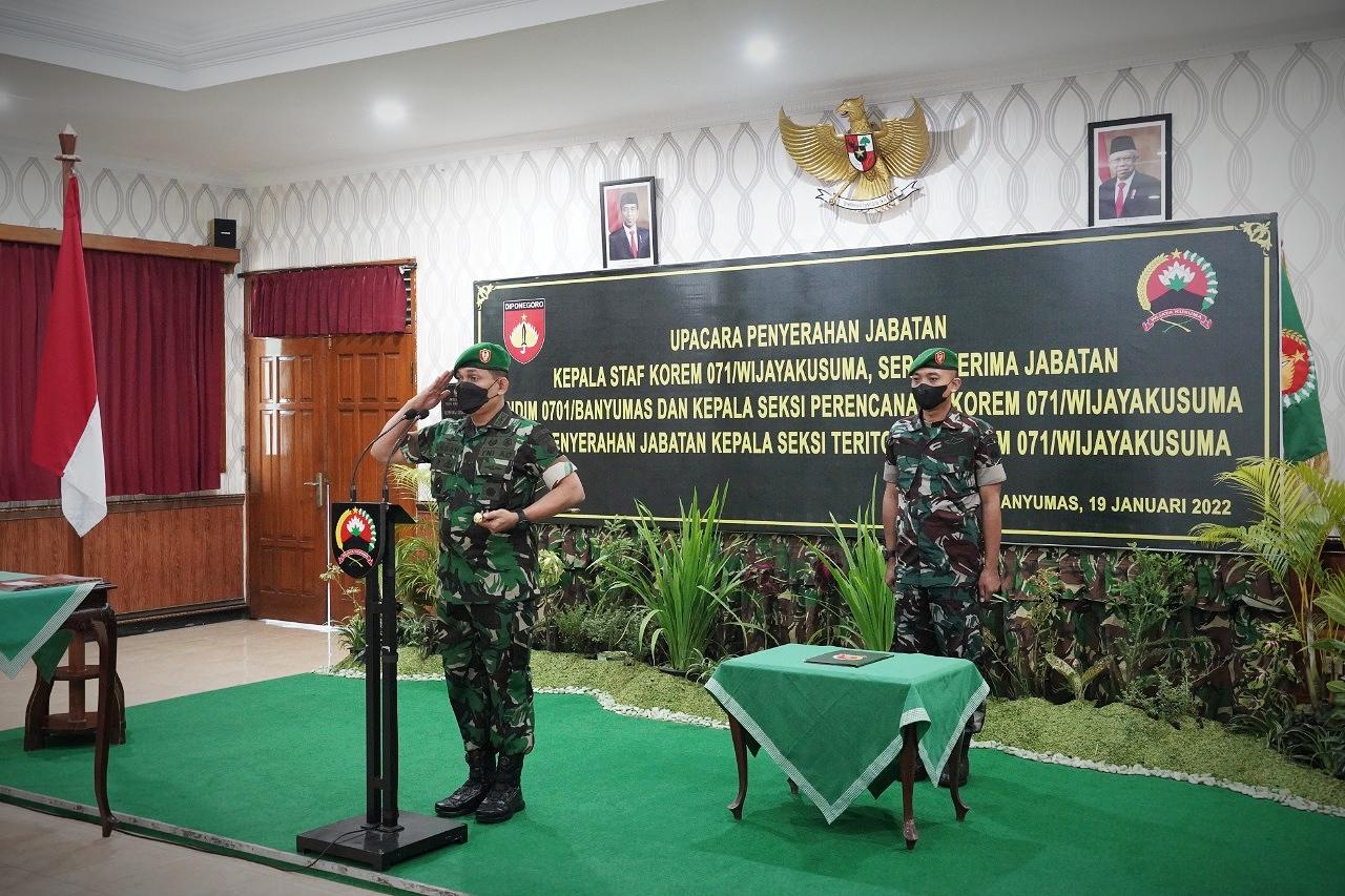 Isi Kekosongan Jabatan, Danrem 071/Wijayakusuma Pimpin Rotasi Jabatan Perwira Menengah Korem 071/Wijayakusuma