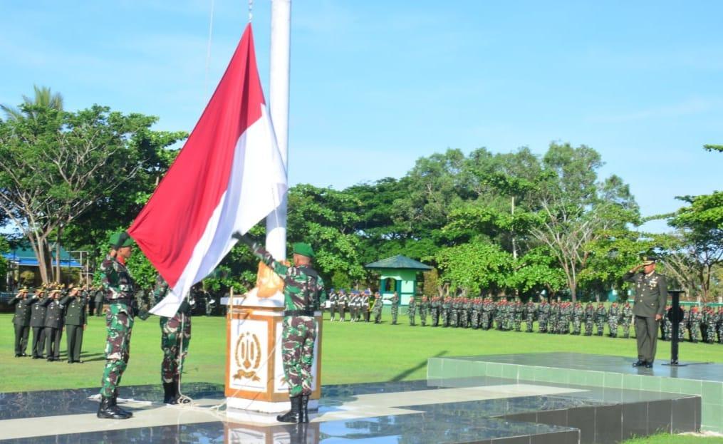 MERAUKE – Korem 174/Anim Ti Waninggap menggelar upacara peringatan hari pahlawan yang jatuh pada tanggal 10 November dengan tema “Pahlawanku Teladanku, Dengan Semangat Pulih Lebih Cepat, Bangkit Lebih Kuat”, dipimpin langsung oleh Kepala Staf Korem 174/ATW Kolonel Inf Frits Wilem Pelamonia sebagai Inspektur Upacara dan bertindak sebagai Komandan Upacara Kapten Cku Nur Utomo yang sehari-hari menjabat sebagai Kepala Keuangan Korem 174/ATW, bertempat di lapangan upacara Makorem 174/ATW Jalan Poros Tanah Miring, Kab. Merauke, Papua Selatan, Kamis (10/11/2022). Kegiatan upacara diikuti oleh personel militer maupun ASN Korem 174/ATW se-Garnizun Merauke.