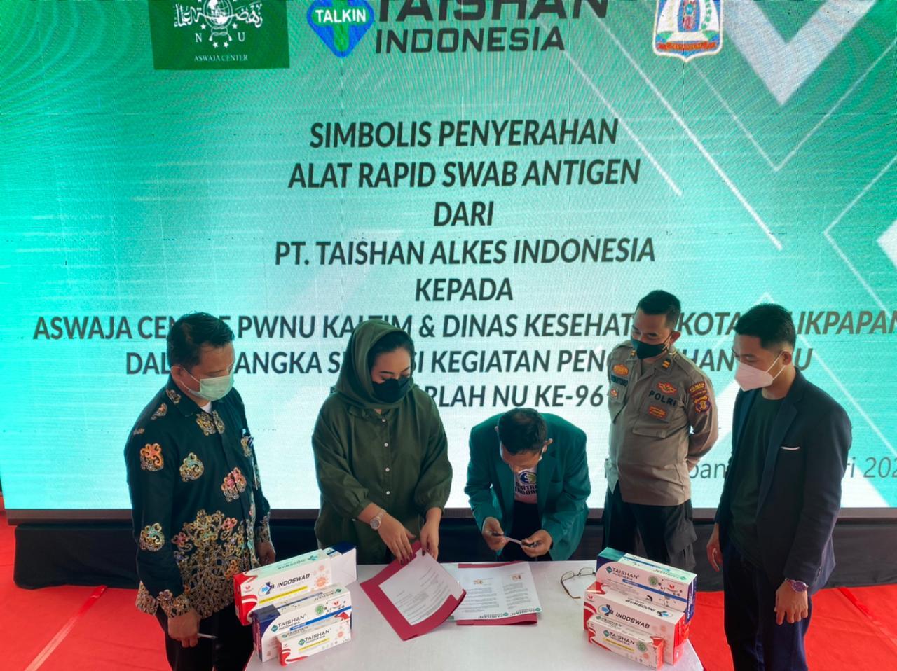 Selain melakukan penyerahan secara simbolis, dalam kesempatan yang sama juga dilaksanakan penandatanganan Nota Kesepakatan antara PT. TAISHAN ALKES INDONESIA dan ASWAJA CENTER PWNU KALIMANTAN TIMUR bersama dengan DINAS KESEHATAN KOTA BALIKPAPAN, KALIMANTAN TIMUR; terkait dengan akan diadakannya kerja sama dalam jangka panjang antar para pihak perihal pendistribusian Alat Kesehatan terkhususnya Alat Rapid Test Antigen & PCR yang diproduksi oleh PT. TAISHAN ALKES INDONESIA ke seluruh daerah KALIMANTAN terkhusus kepada kawasan KALIMANTAN TIMUR, yang dimana penjualan dilakukan dengan biaya rendah dan terjangkau. Produk Alat Kesehatan Juga PT. Taishan Alkes Indonesia merupakan produksi dalam negeri yang sudah bersertifikat halal, memiliki CE REP, CE, ISO, dan TKDN 48%.