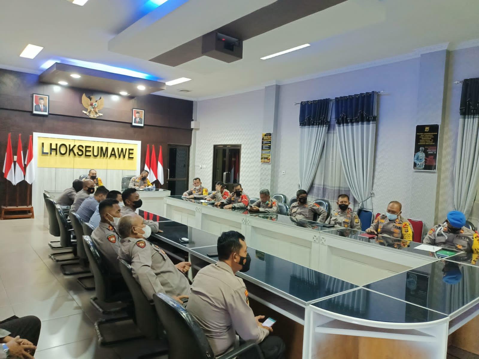 Kapolres Lhokseumawe Ikuti Video Conference Kesiapan Pengamanan Arus Mudik