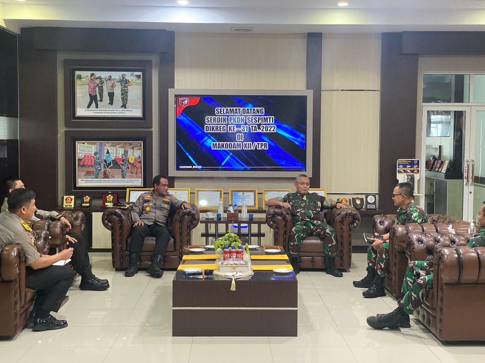 Kasdam XII/Tpr Terima Peserta Didik PKDN Sespimti Polri Dikreg ke-31 TA 2022