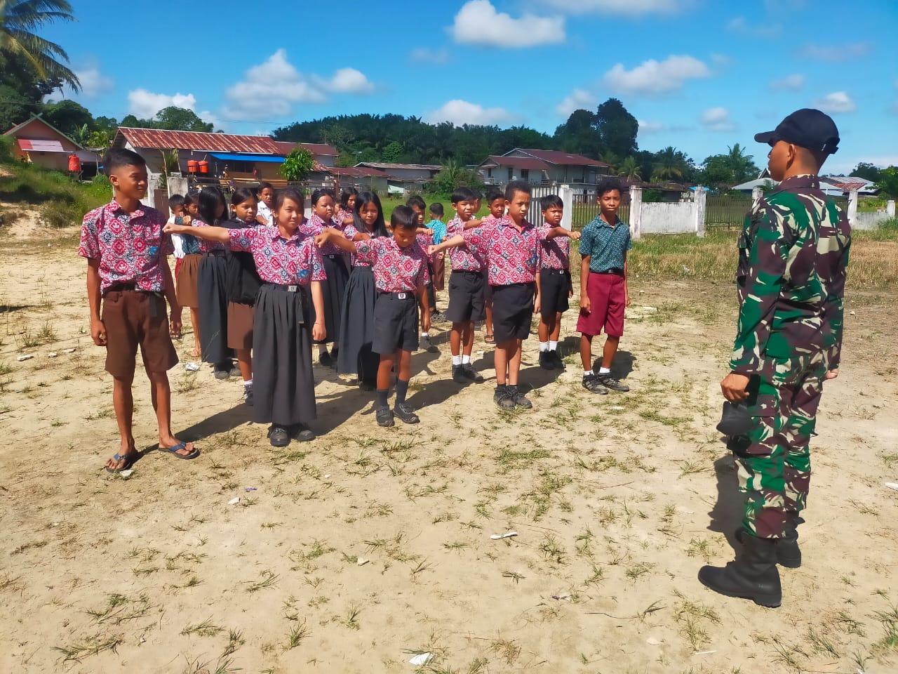 Kehadiran Satgas Pamtas RI-MLY Yonif 645/Gty Sebagai Tenaga Pengajar di SDN 26 Sei Daun di Wilayah Perbatasan RI-MLY