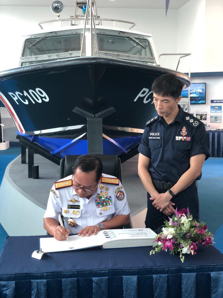 Komandan SPCG SAC Cheang Keng Keong menyambut kedatangan Laksdya TNI Dr. Aan Kurnia beserta rombongan di Brani, Markas SPCG. Pada kesempatan ini, Kepala Bakamla RI selain mendapatkan penjelasan tentang tugas dan peran SPCG, juga sekaligus memberikan penjelasan tentang Bakamla RI.
