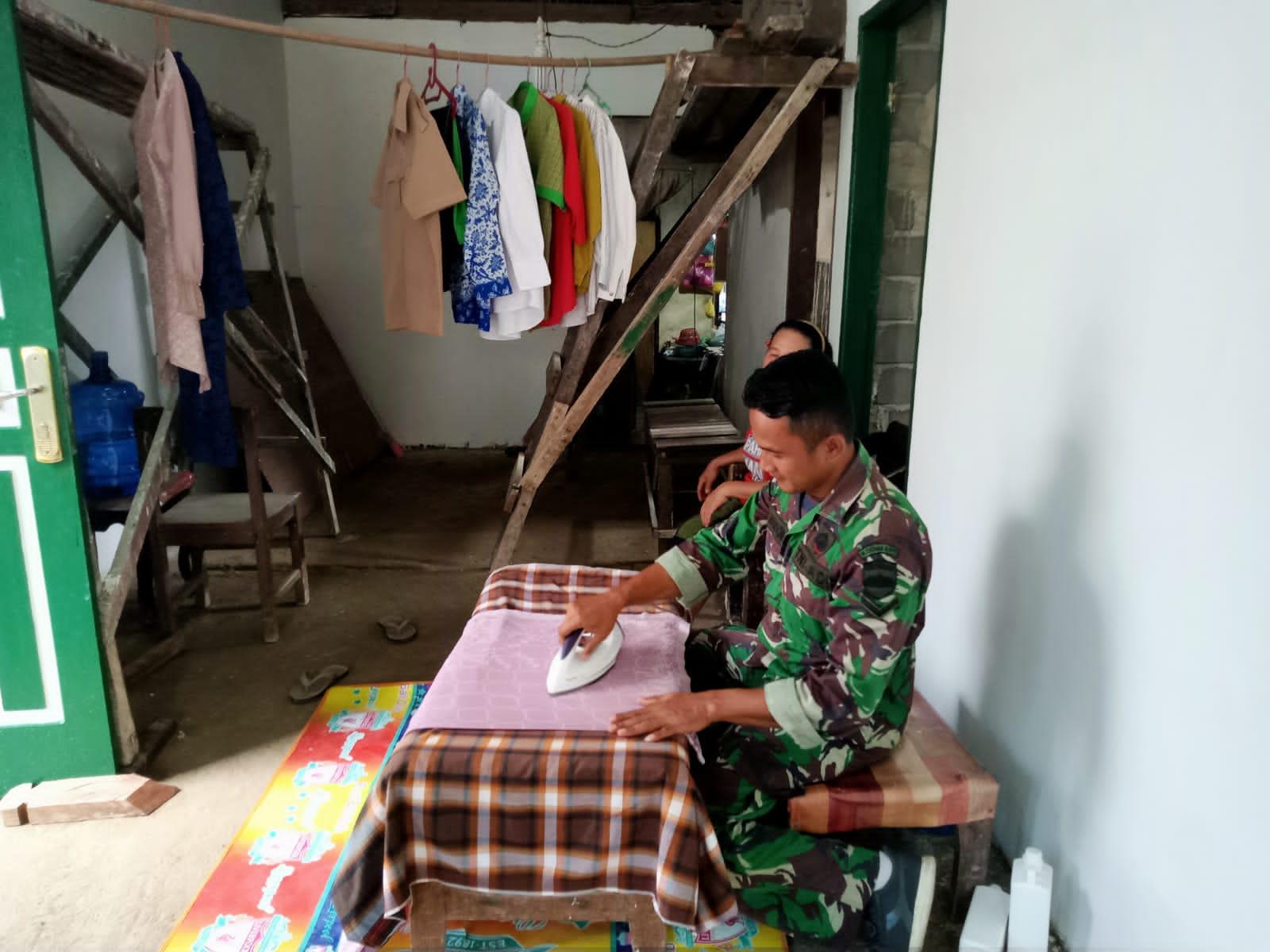 Seperti yang dilakukan Sertu Ali Mardoni yang membantu orang tua asuhnya. Bahkan setelah membantu di dapur, prajurit TNI ini juga membantu menyelesaikan pekerjaan dirumah seperti menyetrika pakaian.