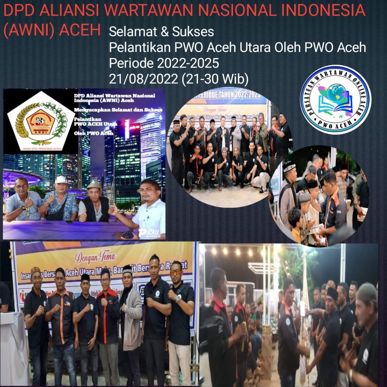 ACEH TIMUR – Dewan Pengurus Daerah Aliansi Wartawan Nasional Indonesia (AWNI) Aceh Hendrika Mengucapkan Selamat dan Sukses atas Pelantikan Pengurus Persatuan Wartawan Online (PWO) Aceh Utara oleh Pengurus DPP Pusat Persatuan online Aceh Periode 2022-2025, Selasa 23/8/22.