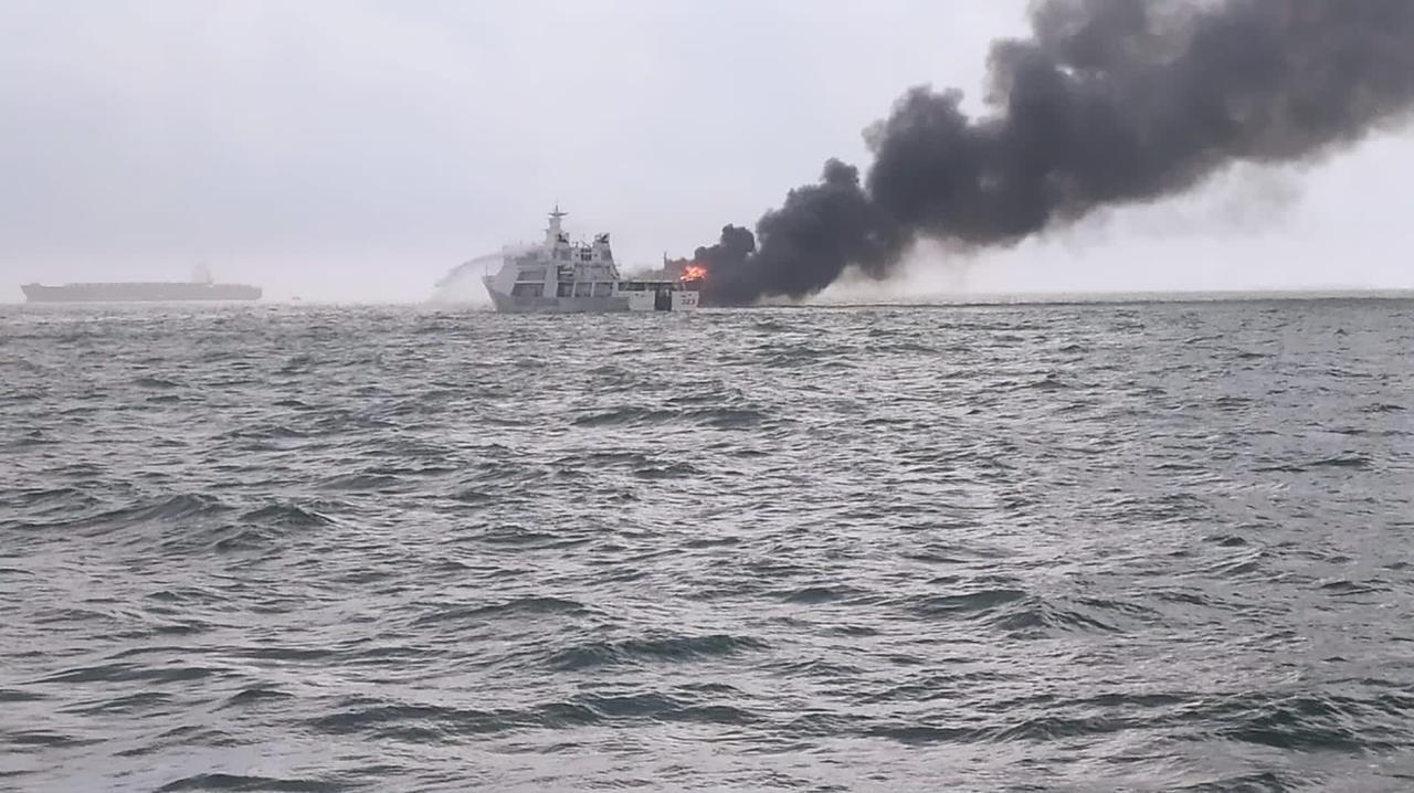 KN Pulau Dana-323 Bakamla RI Padamkan Kapal Terbakar di Perairan Karimun