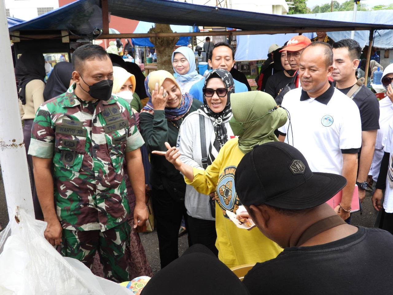 BANJAR – Komandan Kodim 0613/Ciamis Letkol Inf Wahyu Alfiyan Arisandi, S.I.P., M.I.Pol., Bersama Ketua Persit KCK Cab XXIV Kodim 0613/Ciamis dr. Hera Fitriasari, hadiri Pekan Kuliner Sport Center Langensari di kawasan Gelora Banjar Patroman yang diresmikan langsung oleh Walikota Banjar Hj. Ade Uu Sukaesih, Sabtu (29/10/2022).