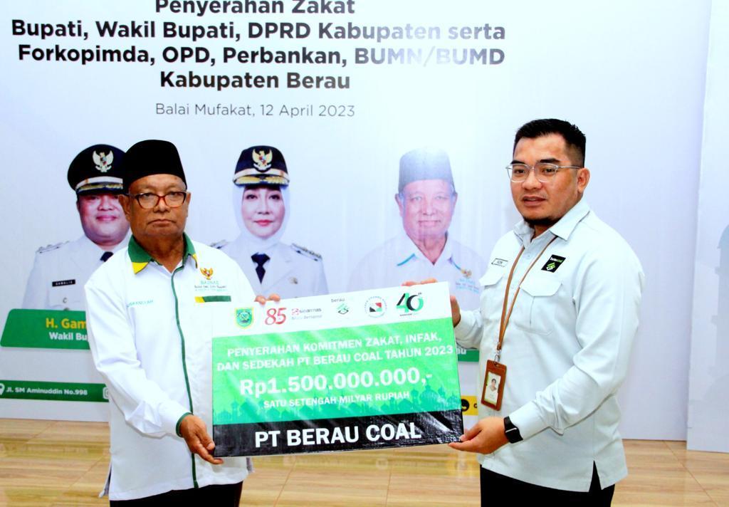 BERAU – PT Berau Coal telah menyerahkan Komitmen Zakat, Infak, dan Sedekah (ZIS) kepada Badan Amil Zakat Nasional (Baznas) Kabupaten Berau sebesar Rp1,5 Miliar, serta penyerahan dan pelaporan Zakat penghasilan karyawan PT Berau Coal periode Maret 2022-April 2023 sebesar lebih dari Rp 894 juta di Balai Mufakat, Rabu (12/4).