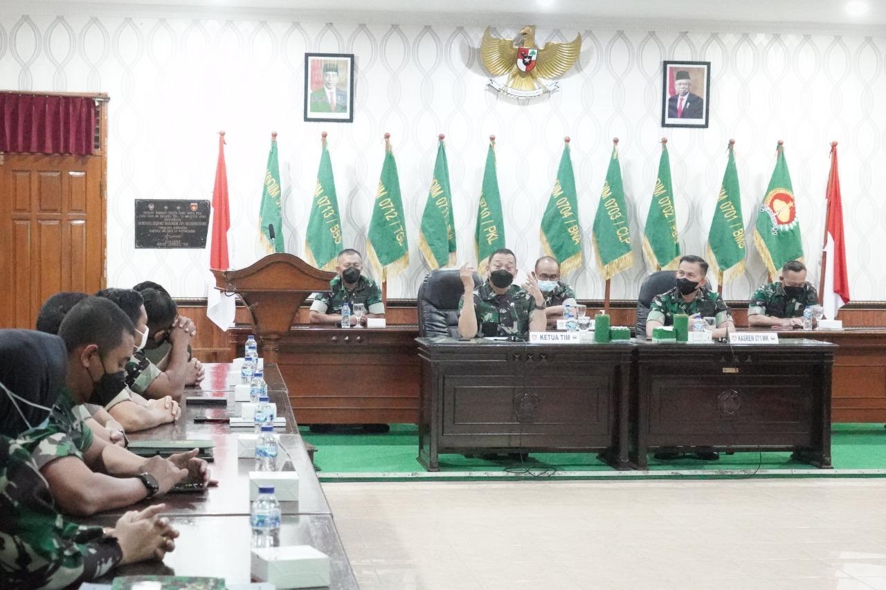 Tim Post Audit Itdam IV/Diponegoro yang dipimpin oleh Kolonel Cpm Bambang Guritno, S.H., melakukan Wasrik (Pengawasan dan Pemeriksaan) terhadap kinerja Korem 071/Wijayakusuma, dengan sasaran Progjagar TA.2021.