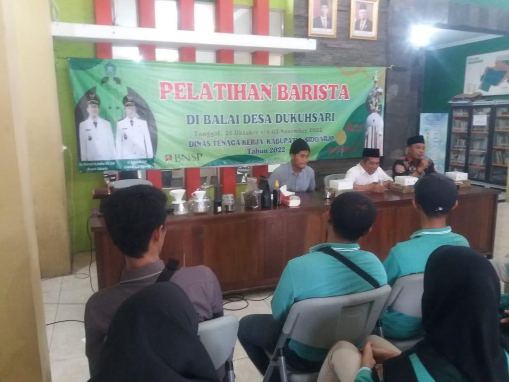 SIDOARJO – Untuk meningkatkan nilai tambah serta menambah pengetahuan tentang cara meracik pembuatan kopi yang dapat diminum dengan nikamt, tentu hal ini membutuh keterampilan khususus. Dinas Tenaga Kerja Kabupaten Sidoarjo menggelar pelatihan Barista yang dimulai sejak sejak 26 Oktober hingga 3 November 2022 di Balai Desa Dukuhsari Kecamatan Jabon Kabupaten Sidoarjo yang diikuti warga Kecamatan Jabon.
