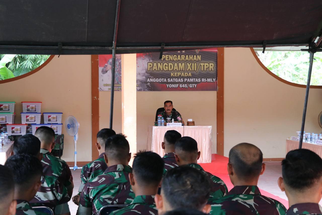 Kunker Pangdam XII/Tpr dan Beri Penghargaan Kepada Prajurit Satgas Pamtas Yonif 645/Gty yang Berprestasi