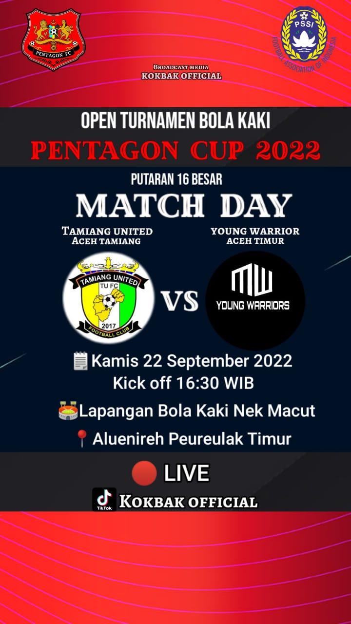ACEH TIMUR – Laga Match Day Open Turnamen Bola Kaki Pentagon Cup 2022 siap digelar, di ikuti 16 team 4 Kabupaten/Kota dilaksanakan di lapangan Nek Macut Alue Nireh Kecamatan Peureulak Timur kabupaten Aceh Timur, Kamis 22/9/2022.
