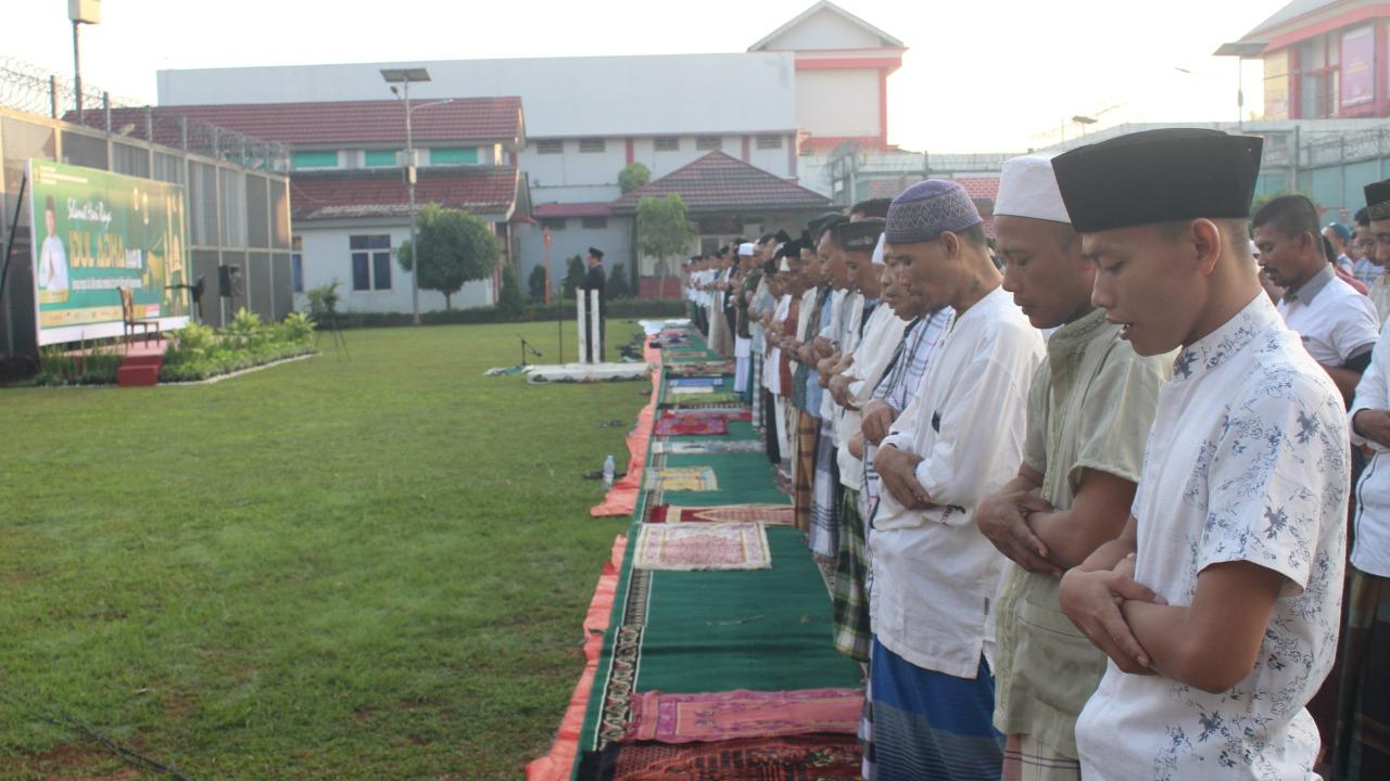 Bertempat di Lapangan rumput dan lapangan futsal Lapas Cikarang, para warga binaan terlihat begitu khusu menjalankan ibadahnya.