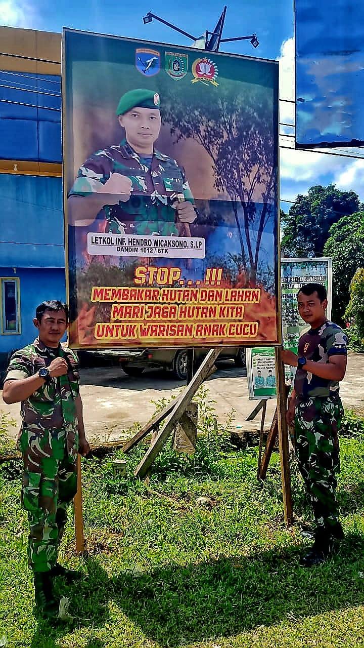 Letkol Inf Hendro Wicaksono S.I.P. mengatakan dalam pemasangan himbauan pencegahan karhutla ini adalah upaya memberi peringatan kepada masyarakat mengenai daerah-daerah yang rawan terjadinya kebakaran.