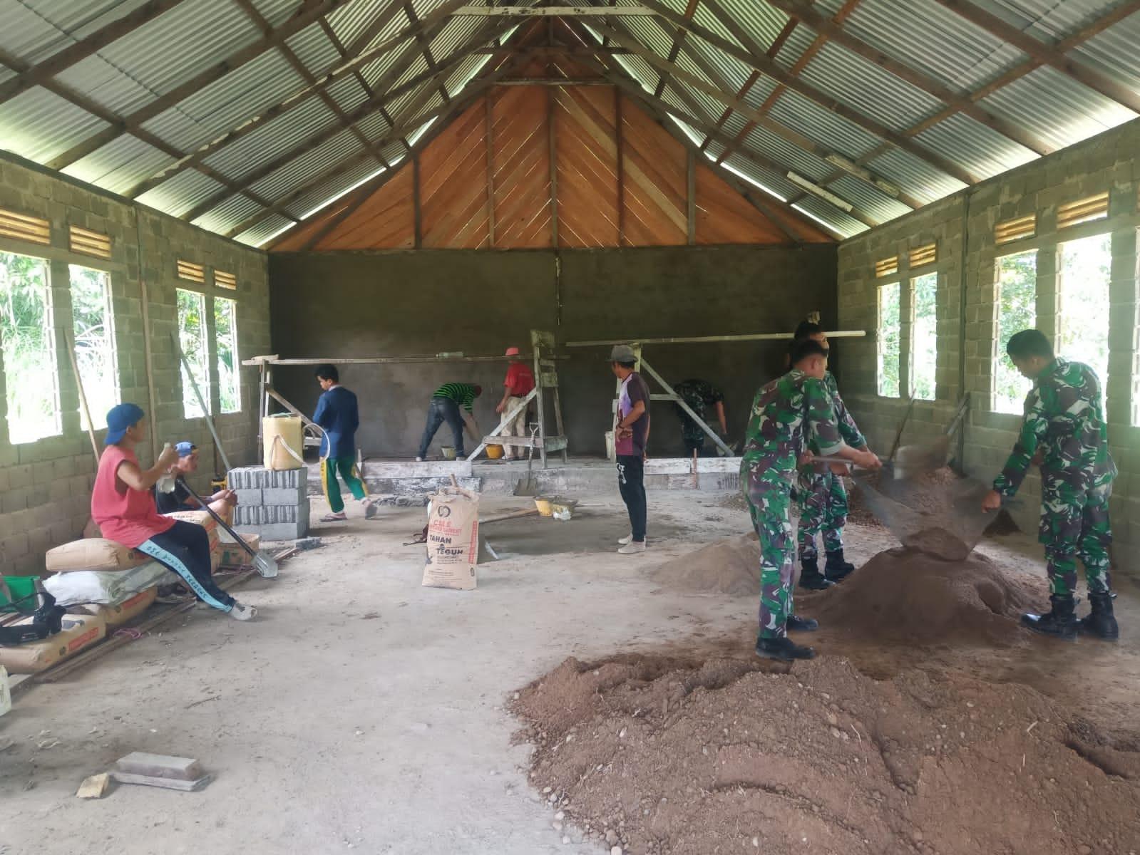 Manunggal Dengan Rakyat, Satgas Pamtas Yonif 645/Gty membantu Pemelesteran Gereja Katolik Santo Yohanes