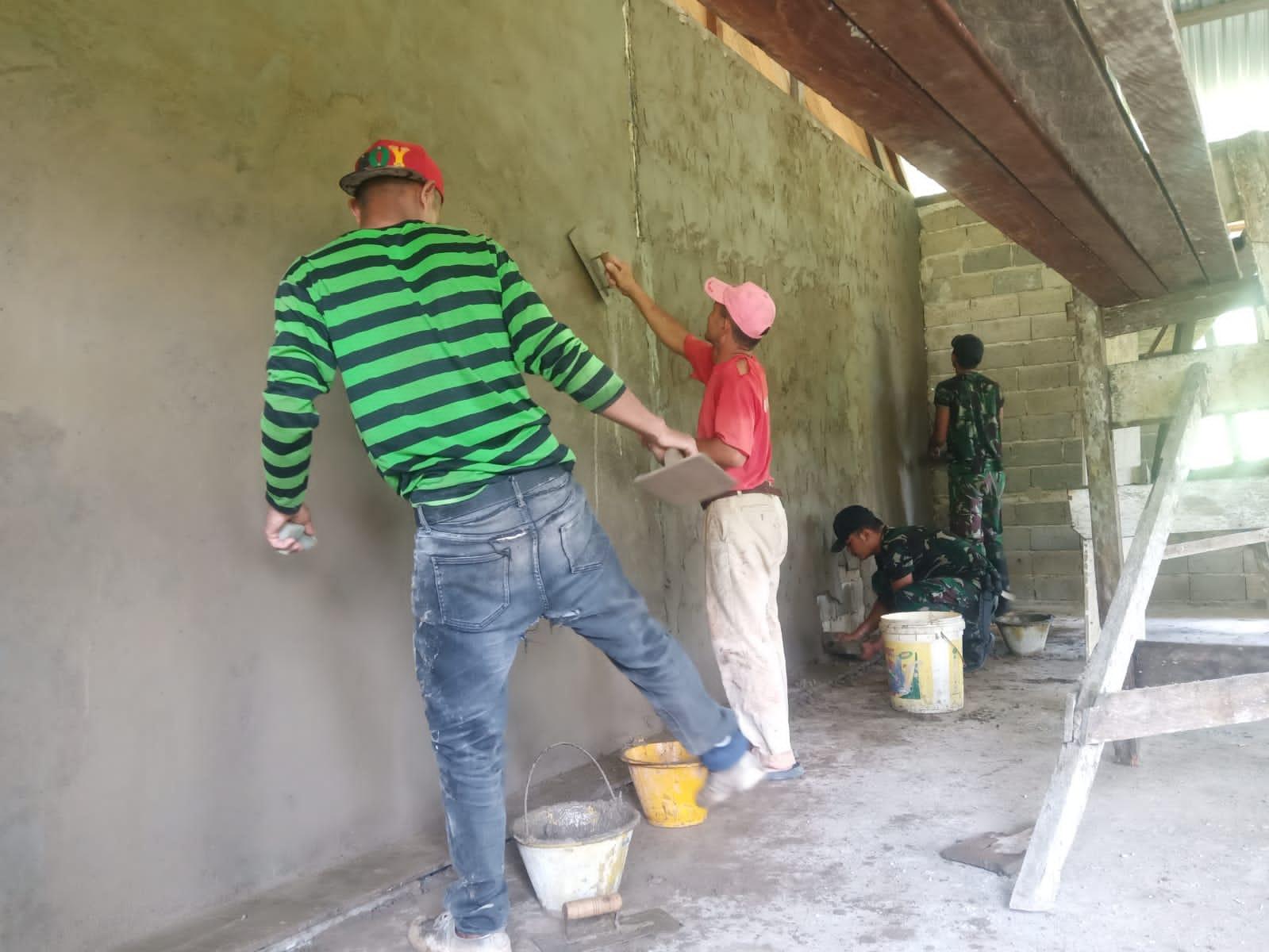 Manunggal Dengan Rakyat, Satgas Pamtas Yonif 645/Gty membantu Pemelesteran Gereja Katolik Santo Yohanes