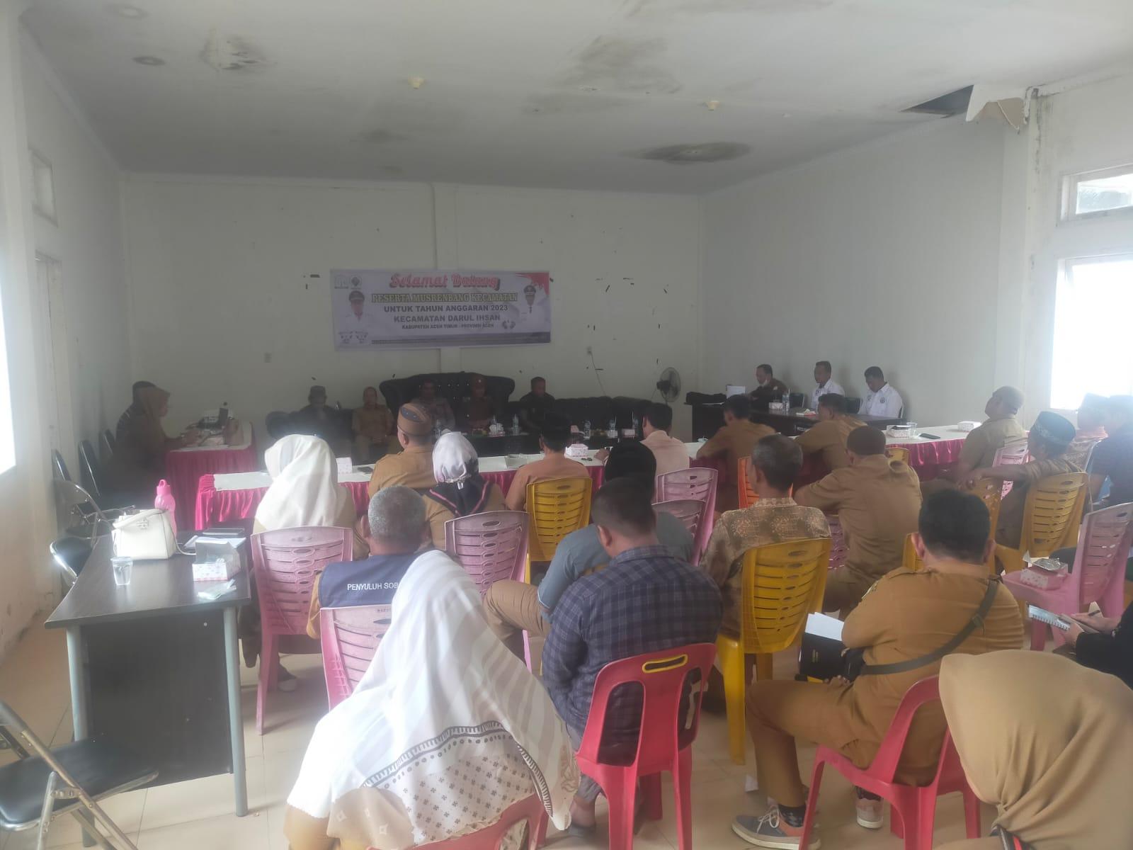 Camat Darul Ihsan Mukhtaruddin, SE, dalam kesempatannya menyampaikan bahwa kegiatan Musrenbang kecamatan tahun Anggaran 2024 ini, adalah suatu bentuk solusi untuk rencana pembangunan didalam kecamatan yang sebelumnya telah diakomodir melalui pra musrenbang,