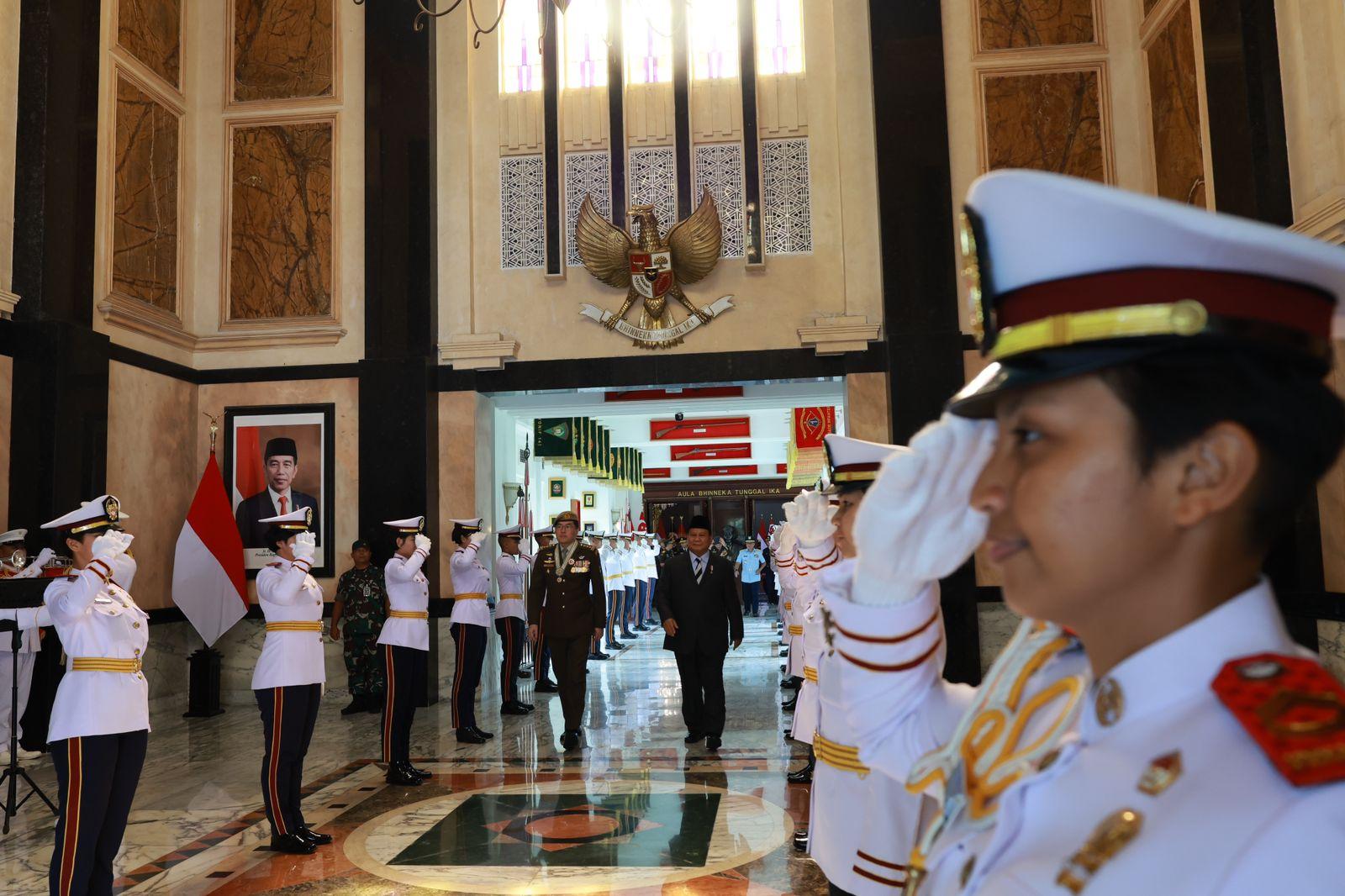 JAKARTA – Menteri Pertahanan Republik Inodnesia Prabowo Subianto, menerima kunjungan kehormatan Panglima Angkatan Bersenjata Singapura (Chief of the Defence Force Republic of Singapore) Lt Gen Melvyn Ong di Kemhan, Jakarta, Senin (27/2).