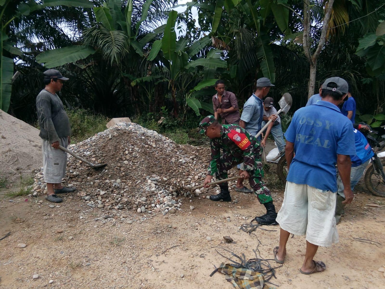 Mewujudkan Kemanunggalan TNI dengan Rakyat Babinsa Gotong Royong Timbun Jalan Berlubang