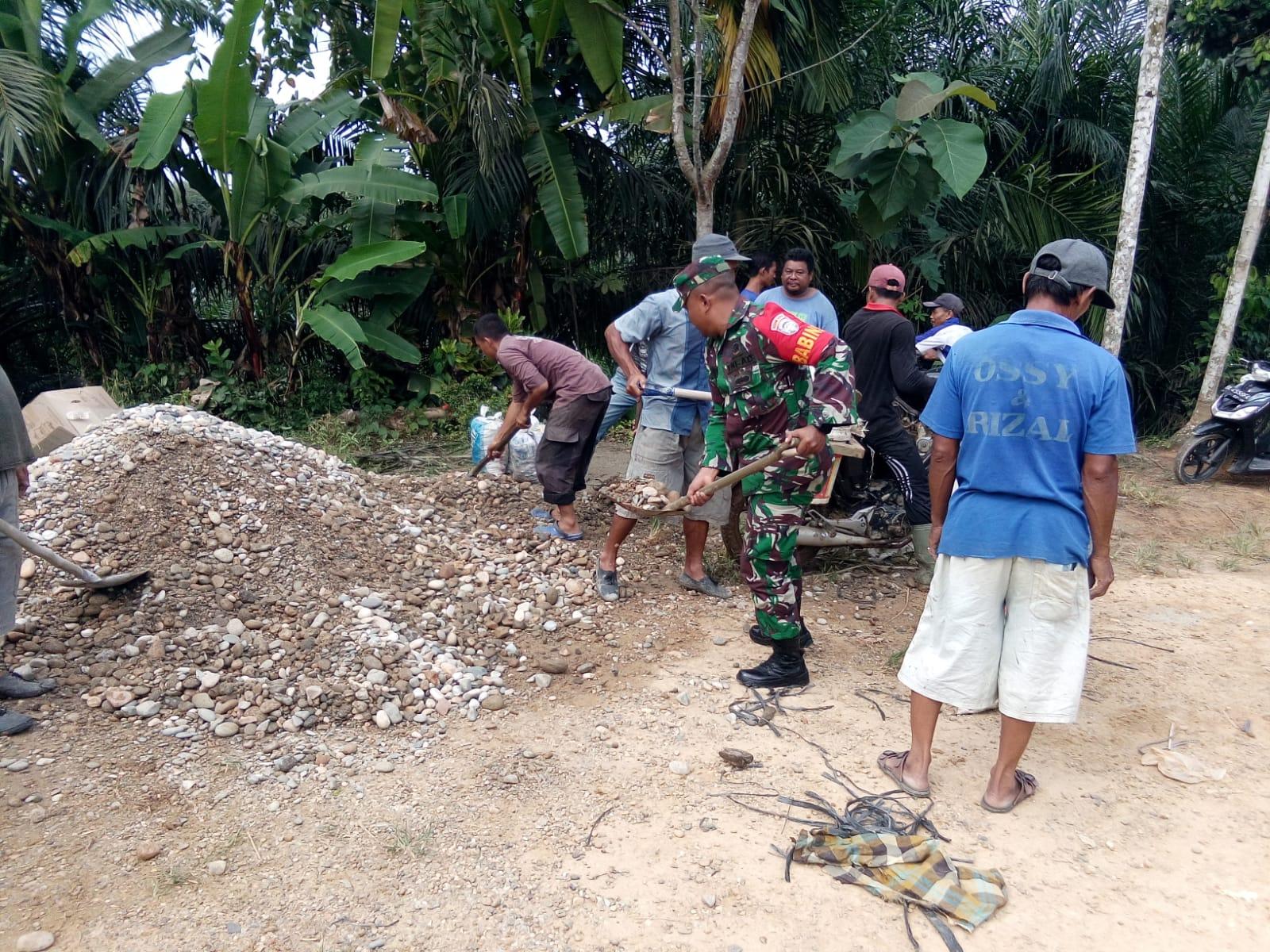 Mewujudkan Kemanunggalan TNI dengan Rakyat Babinsa Gotong Royong Timbun Jalan Berlubang