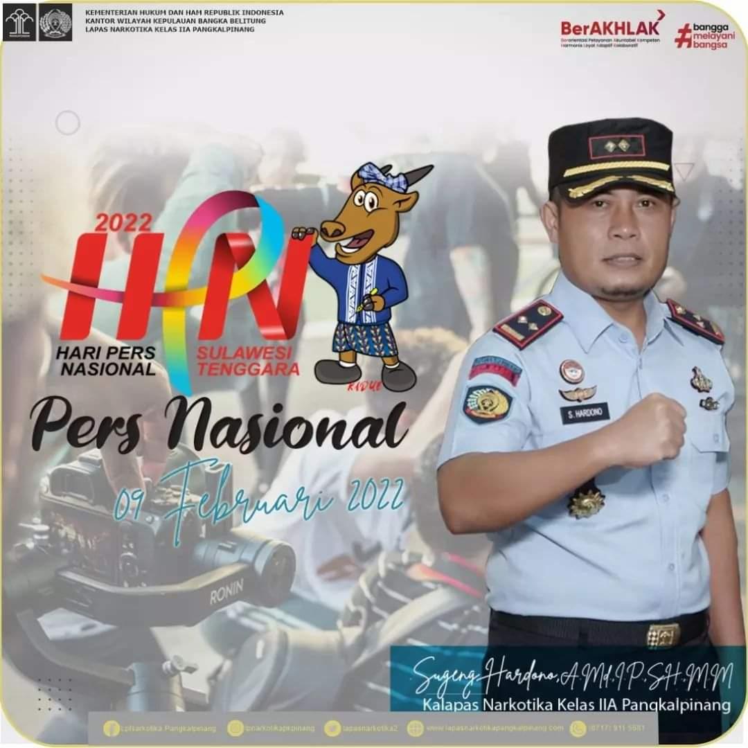 PANGKALPINANG – Kepala Lembaga Pemasyarakatan Narkotika Kelas II Kota Pangkalpinang, Sugeng Hardono turut mengucapkan Selamat Hari Pers Nasional Tahun 2022 yang diperingati pada Rabu (9/2/2022).