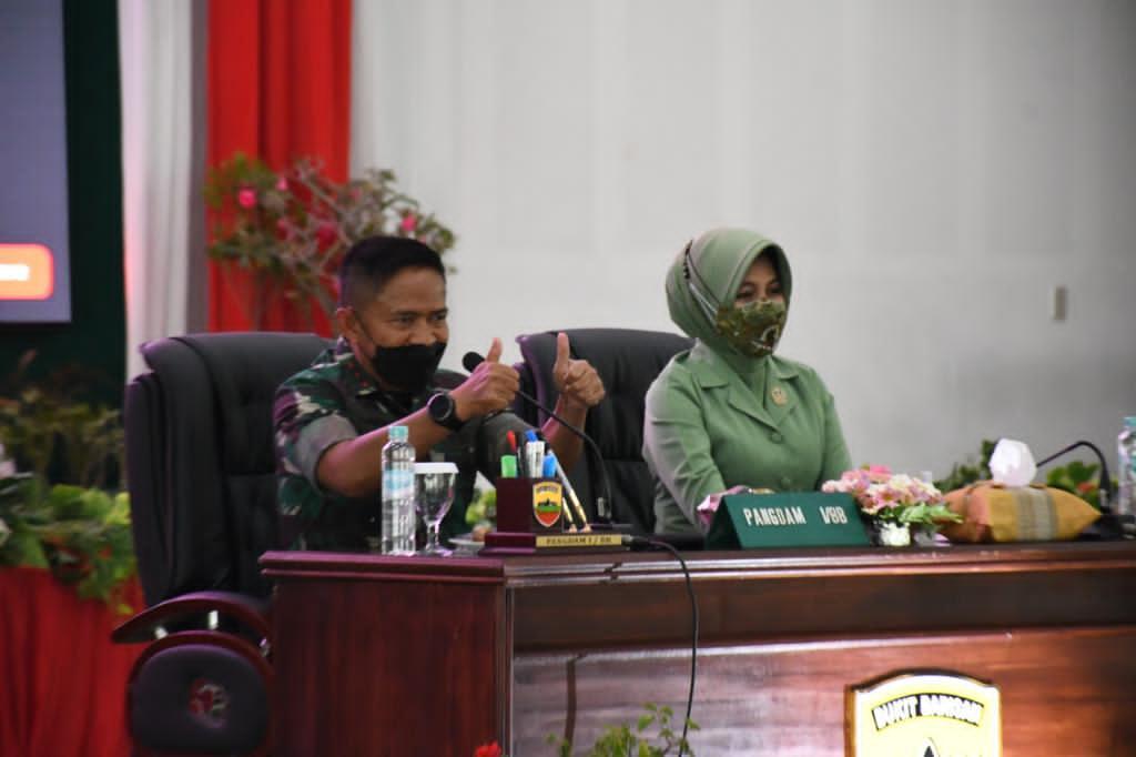 MEDANΒ  – Panglima Kodam I Bukit Barisan, Mayjen TNI Hassanudin, SIP, MM didampingi Ketua Persit KCK Daerah I/BB, Ny Dessy Hassanudin, melakukan exit briefing secara virtual ke seluruh satuan jajaran Kodam I/BB yang ada di wilayah Sumut, Sumbar, Riau, dan Kepri dari Gedung Balai Prajurit Makodam I/BB, Jl Gatot Subroto Km 7,5 Medan, Jumat (4/3/2022).