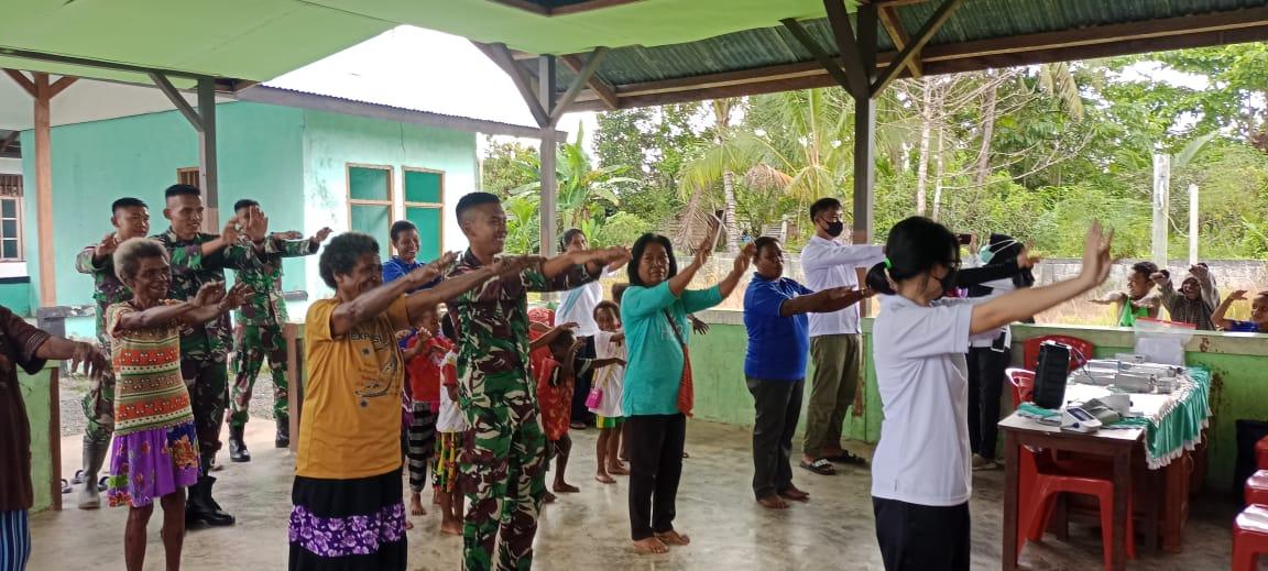KEEROM –  Demi menjaga kesehatan agar selalu bugar dalam melaksanakan aktifitas sehari-hari, Satgas Yonif 126/KC Pos Kotis bekerja sama dengan Puskesmas Senggih mengajak warga untuk melaksanakan senam bersama sekaligus menggelar pengobatan dan pengecekan kesehatan gratis di Kampung Senggih, Kabupaten Keerom.