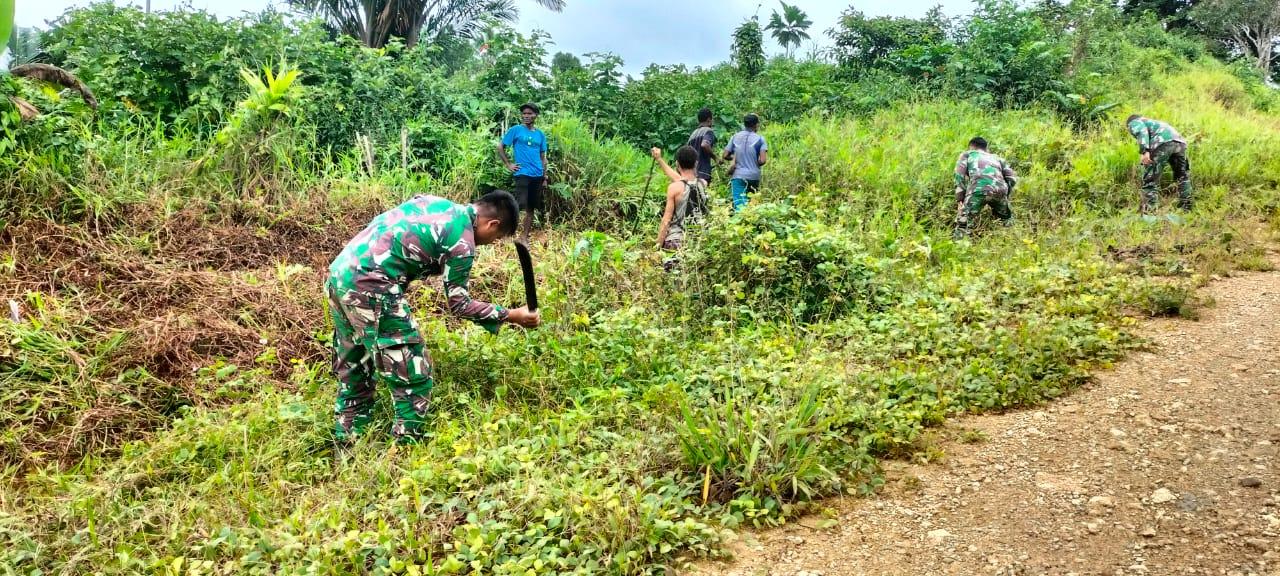 Peduli Alam Papua, Satgas Yonif 126/KC Bersama Masyarakat Laksanakan Gotong Royong