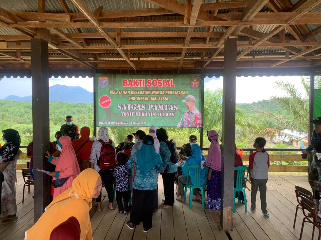 Peduli Kesehatan Warga, Satgas Pamtas Yonif Mekanis 643/Wns Gelar Pengobatan Massal Gratis di Kampung Perbatasan