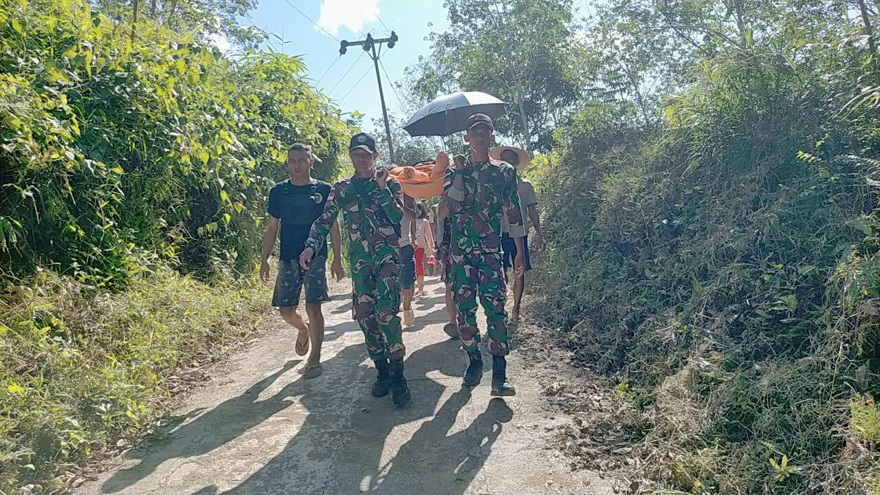 Peduli Sesama, Satgas Pamtas Yonif Mekanis 643/Wns Bantu Menandu Kadus Perbatasan Yang Sakit