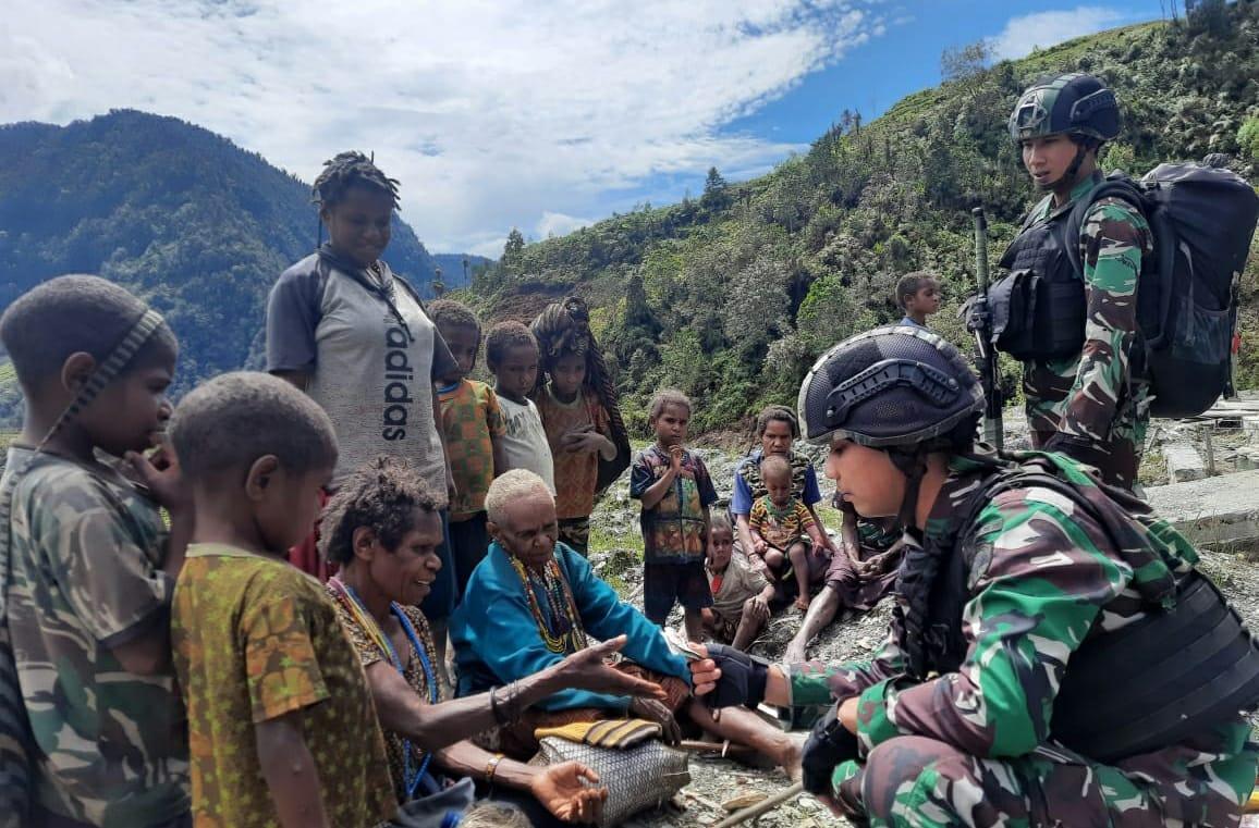 Peduli Terhadap Kesehatan warga Personel Pos Dal Satgas 114 Satria Musara Beri Pelayanan Kesehatan Masyarakat Mbubulyama dari Honai ke Honai
