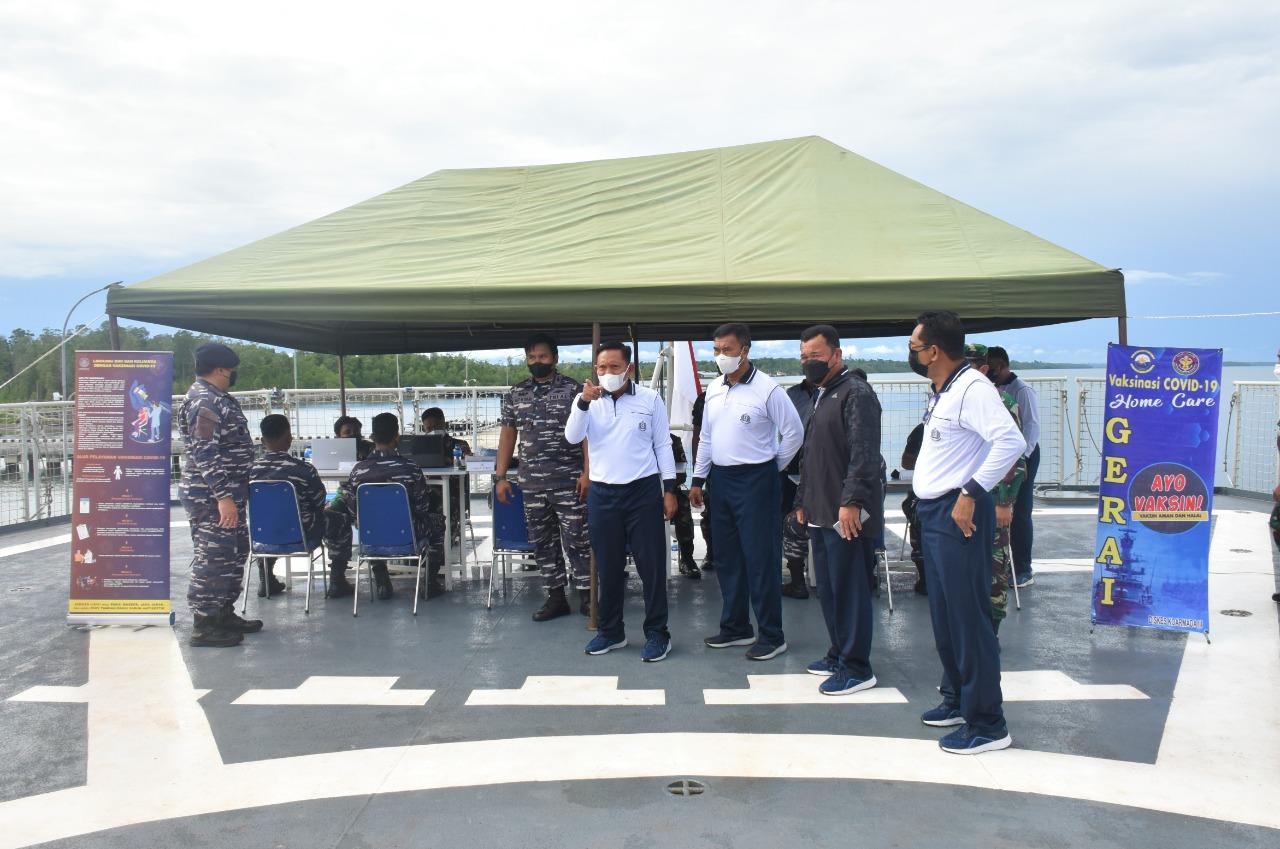 Pelaksanaan Vaksinasi Booster di KRI Teluk Weda-526 Ditinjau Langsung Pangkoarmada III