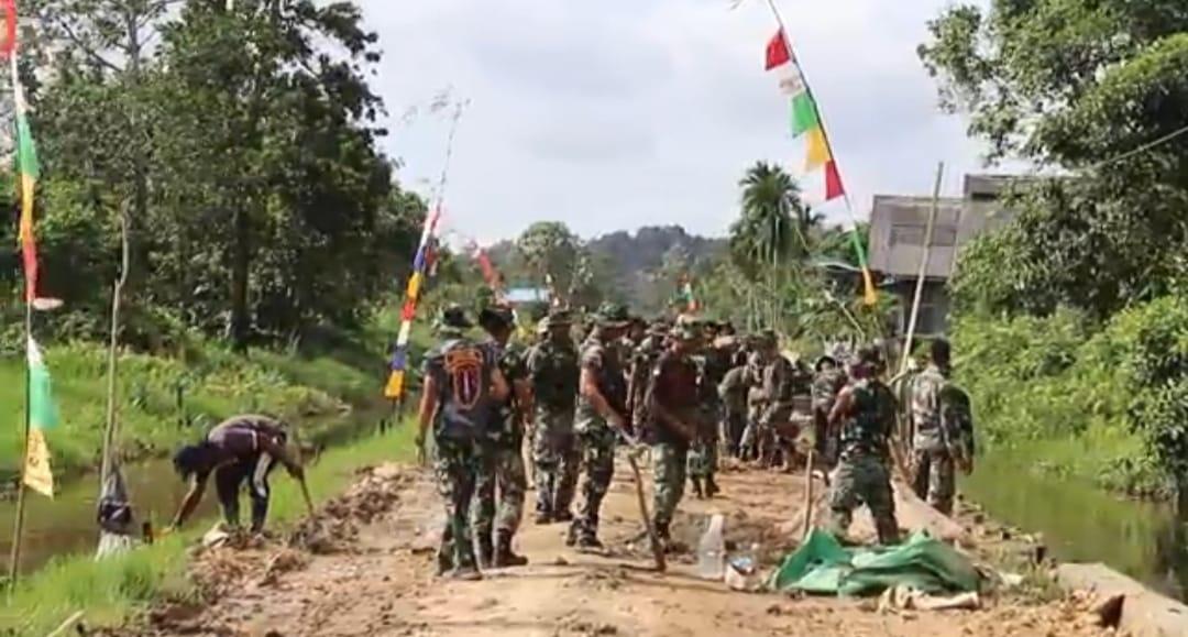 terlaksananya Program TNI membangun Desa yang ke-115, Puluhan personil Satgas TNI Kodim 0901/SMD bersama Masyarakat Kelurahan Handil Bhakti Kecamatan Palaran bekerja secara gotong royong pada Jumat (14/10/22).