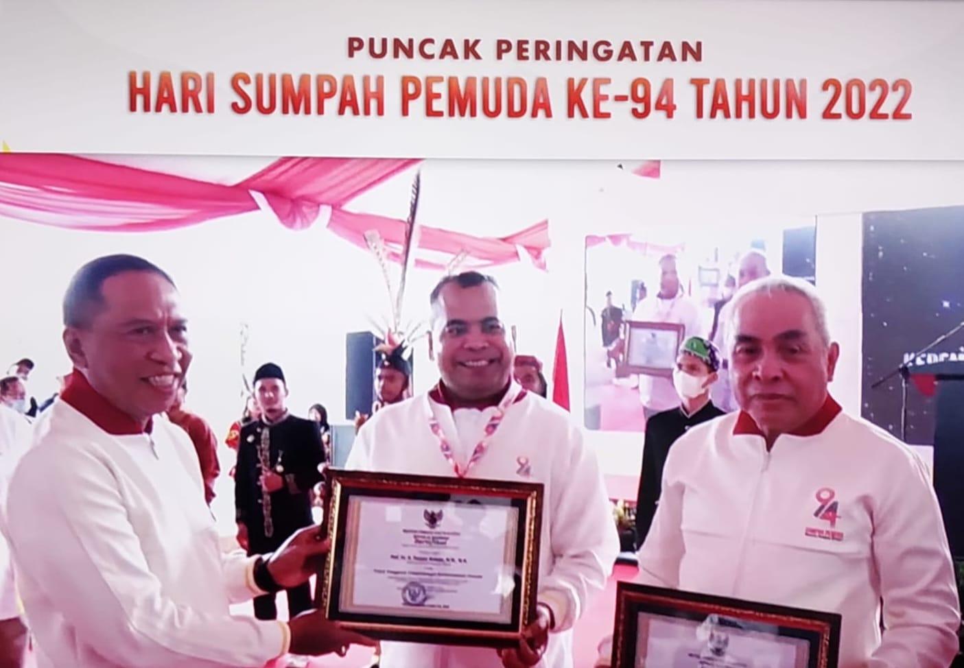 Penyerahan penghargaan tersebut diberikan pada puncak peringatan Hari Sumpah Pemuda ke-94 yang digelar di titik nol Ibu Kota Negara (IKN) Nusantara, Kalimantan Timur.