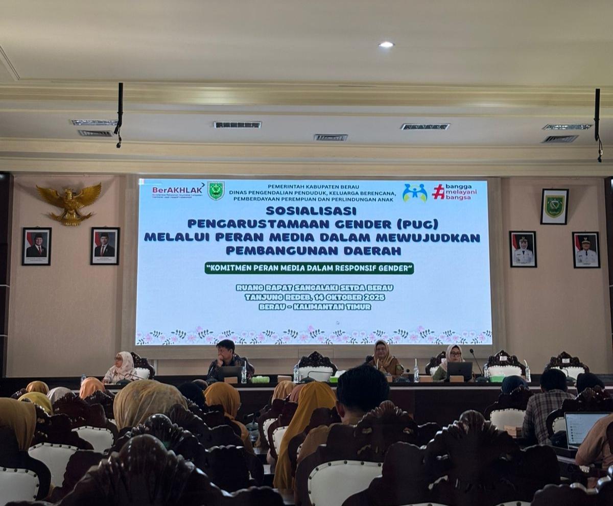 Upaya tersebut diwujudkan dalam Sosialisasi Pengarusutamaan Gender (PUG) melalui Peran Media, yang digelar di Ruang Rapat Sangalaki, Setda Berau, Selasa (14/10/2025). Kegiatan yang mengusung tema “Komitmen Peran Media dalam Responsif Gender” itu diikuti oleh unsur pemerintah daerah, jurnalis, hingga organisasi masyarakat sipil.