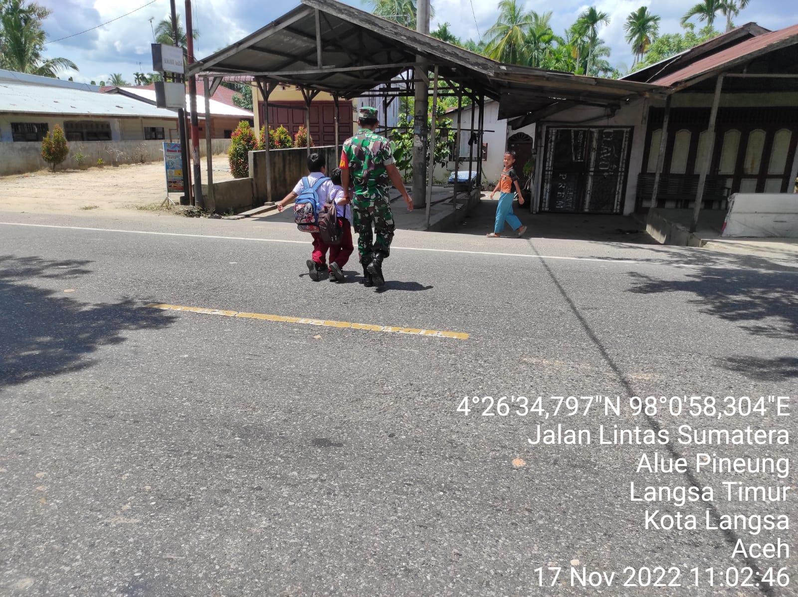 Peran Aktif Babinsa Koramil 23/Lgst untuk Keamanan Murid SD Alue Pineung