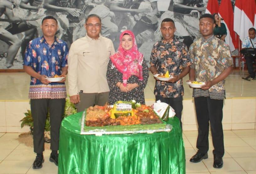 MERAUKE  – Korem 174/ATW menggelar acara syukuran dalam rangka memperingati hari ulang tahunnya yang ke-18 secara sederhana ditandai dengan pemotongan tumpeng dan penyerahan piagam penghargaan kepada 3 orang prajurit yang berprestasi, bertempat di Aula L.B Moerdani Makorem 174/ATW, yang dipimpin langsung oleh Danrem Brigjen TNI E. Reza Pahlevi S.E didampingi Ny. Iswati Reza Pahlevi.