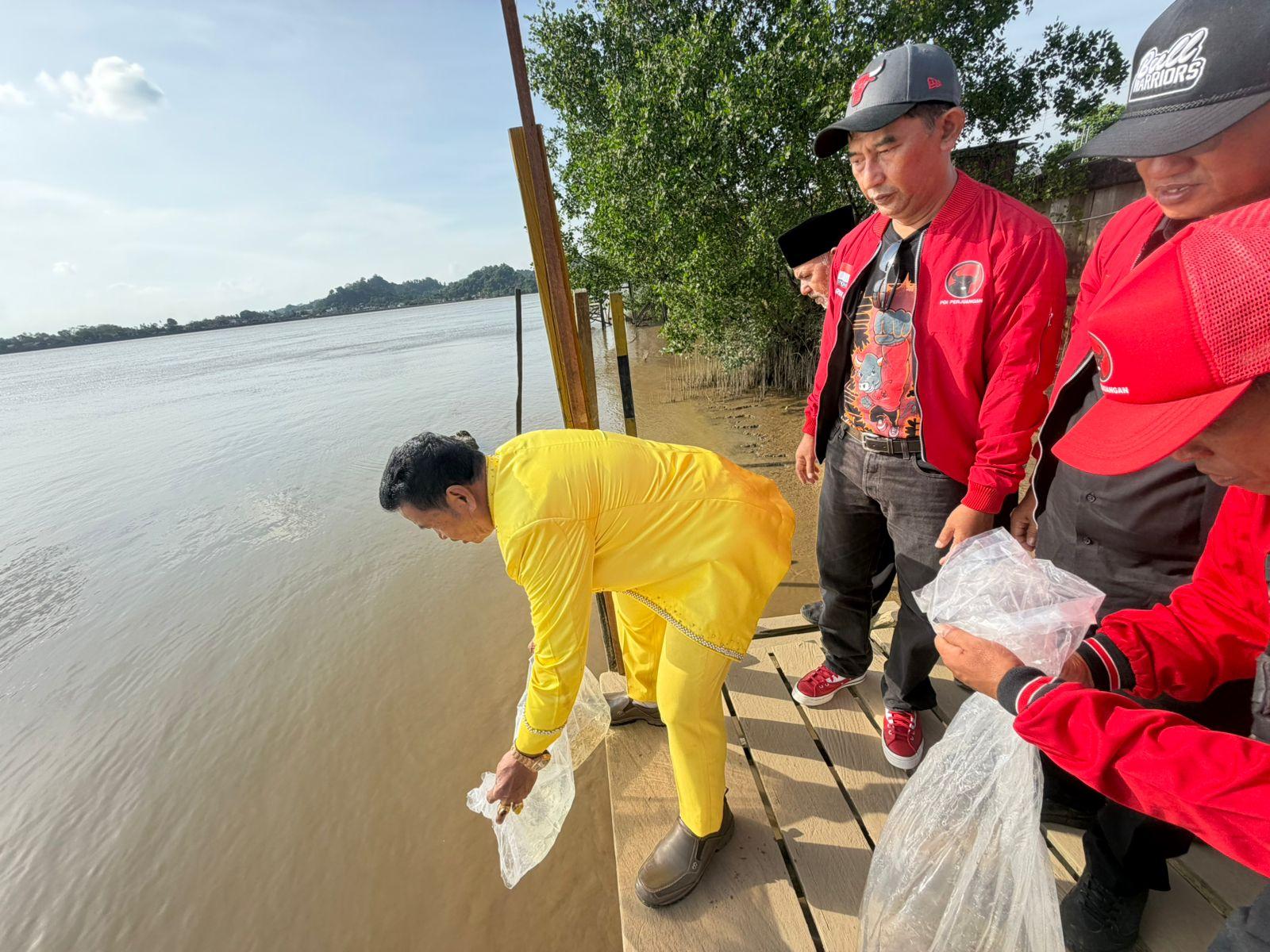 Peringati HUT ke-79 Megawati, PDI-P Berau dan Kesultanan Sambaliung Tebar 7.900 Benih Ikan di Sungai