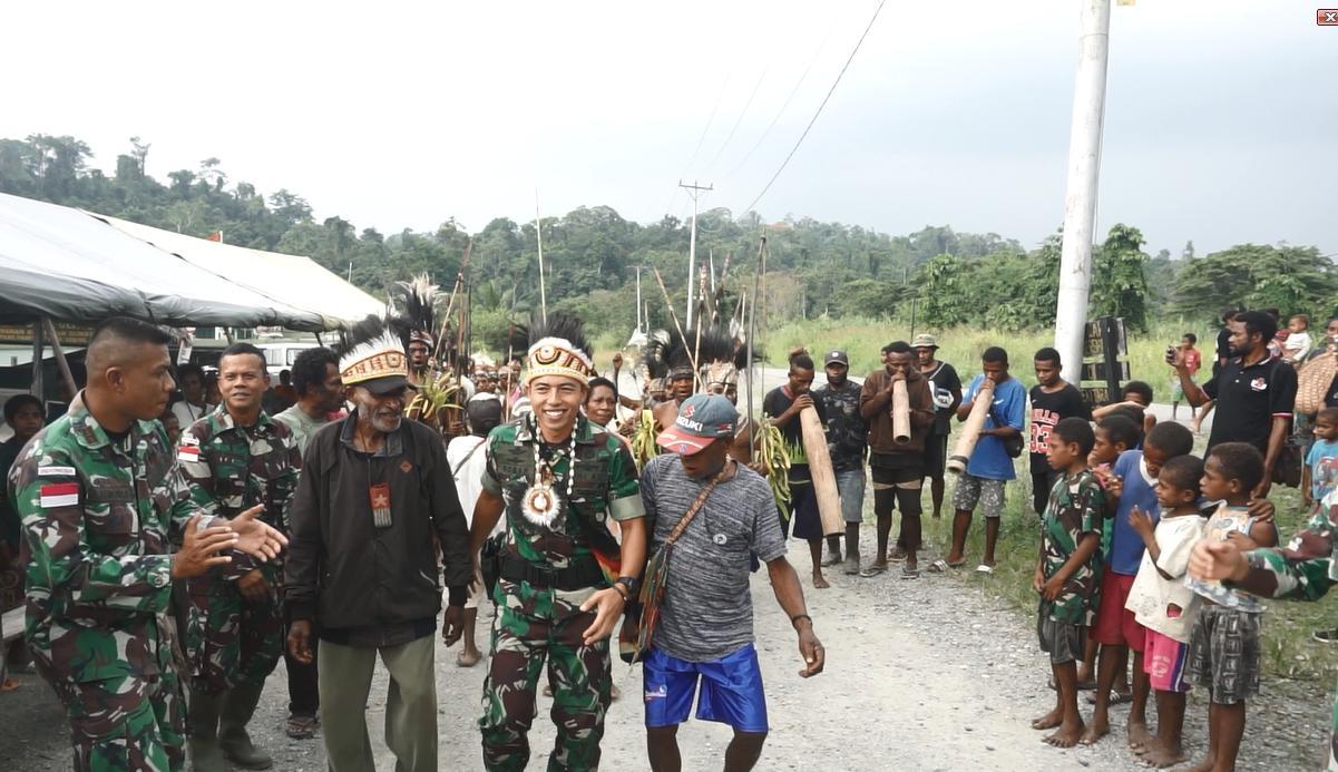 Tarian adat yang diarak oleh sejumlah masyarakat dari kediaman Bapak Yossef, Kepala Suku Klen disambut oleh Wadan Satgas Mayor Inf Wahidin Sobar, S.sos. dengan personel lainnya. Masyarakat dari berbagai elemen dan instansi turut hadir seperti petugas Distrik Waris, Puskesmas, Koramil, Polsek berbondong-bondong datang ke Pos untuk mengantar personel Satgas yang tidak lama lagi akan meninggalkan Pos untuk digantikan oleh Satgas lain dari Yonif 132/Bima Sakti yang sama-sama berasal dari wilayah Sumatera.