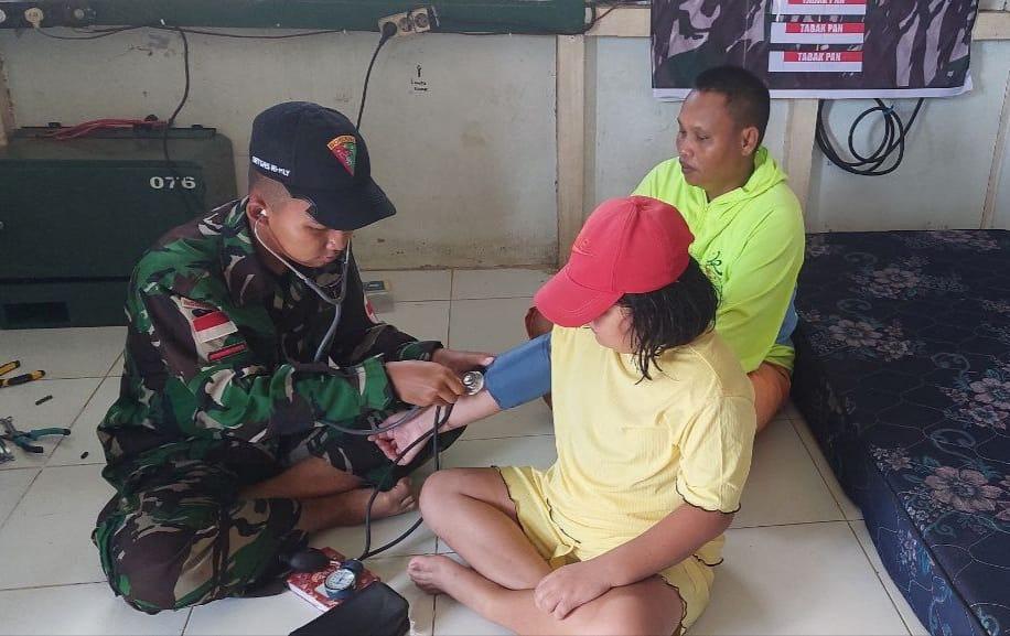 Personel Satgas Pamtas Ri-Malaysia Yonarmed 19/105 Trk Bogani Bantu Obati Masyarakat Di Perbatasan
