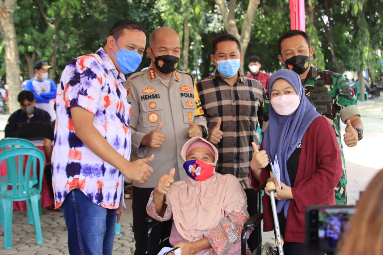 KOTA BEKASI – Pelaksana Tugas (Plt) Wali Kota Bekasi Tri Adhianto bersama Dandim 0507/Bks Letnan Kolonel Kav. Luluk Setyanto dan Kapolres Metro Bekasi Kota tinjau pelaksanaan vaksinasi yang diadakan di Alun-alun Kota Bekasi, Sabtu (16/04).