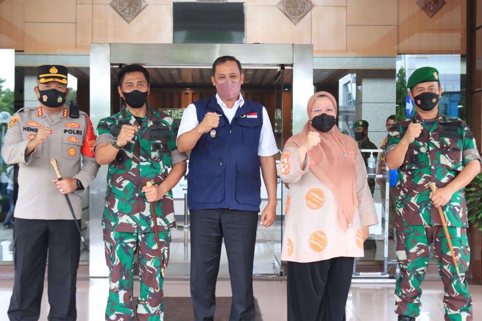KOTA BEKASI – PLT Wali Kota Bekasi Dr. Tri Adhianto terima kunjungan kerja Danrem 051/Wkt Kolonel Inf Yustinus Yono di Plaza Pemkot Bekasi, Kamis (13/1/2022).