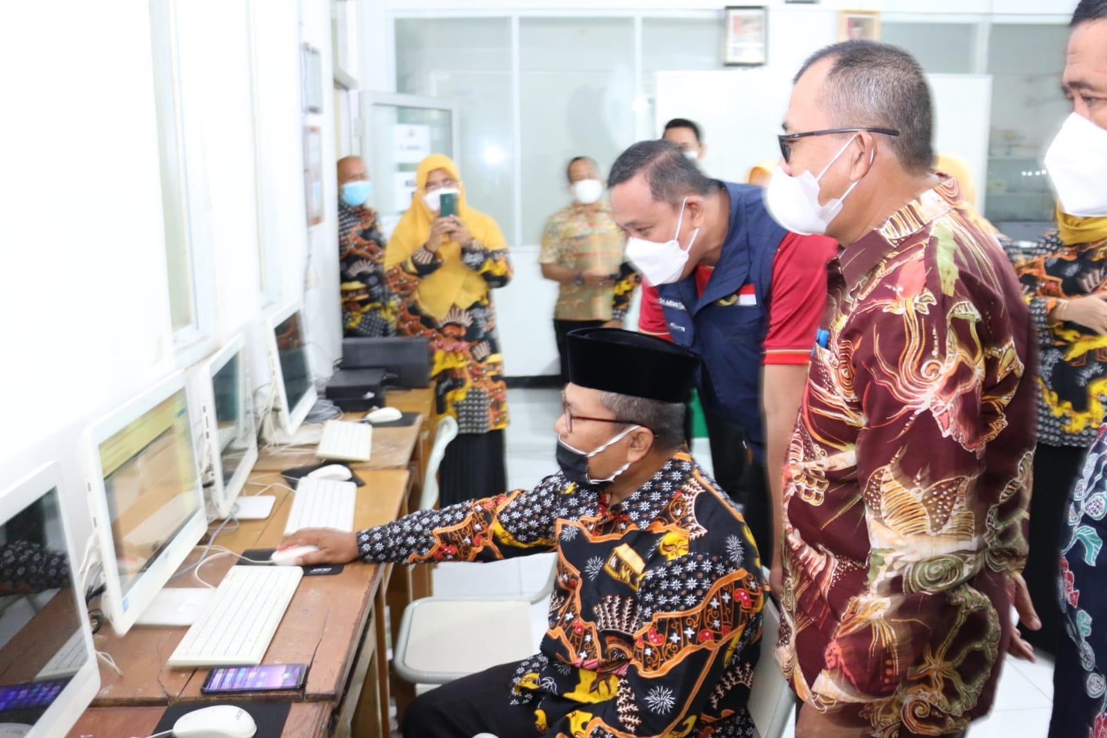 Plt Walikota Bekasi Tri Adhianto didampingi Kepala Dinas Pendidikan Inayatullah berkesempatan mengecek pelaksanaan KBM daring dengan mengunjungi SMPN 1 Kota Bekasi.